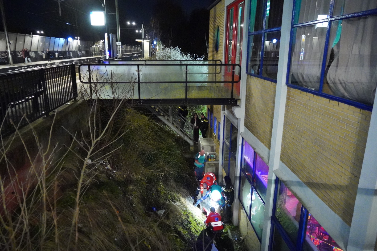 A man sustained critical injuries after falling approximately ten meters from a platform at Rotterdam-Noord station. The incident occurred when he fell over a railing near the platform, according to police reports. Emergency services responded to the scene, and the man is currently receiving medical treatment.