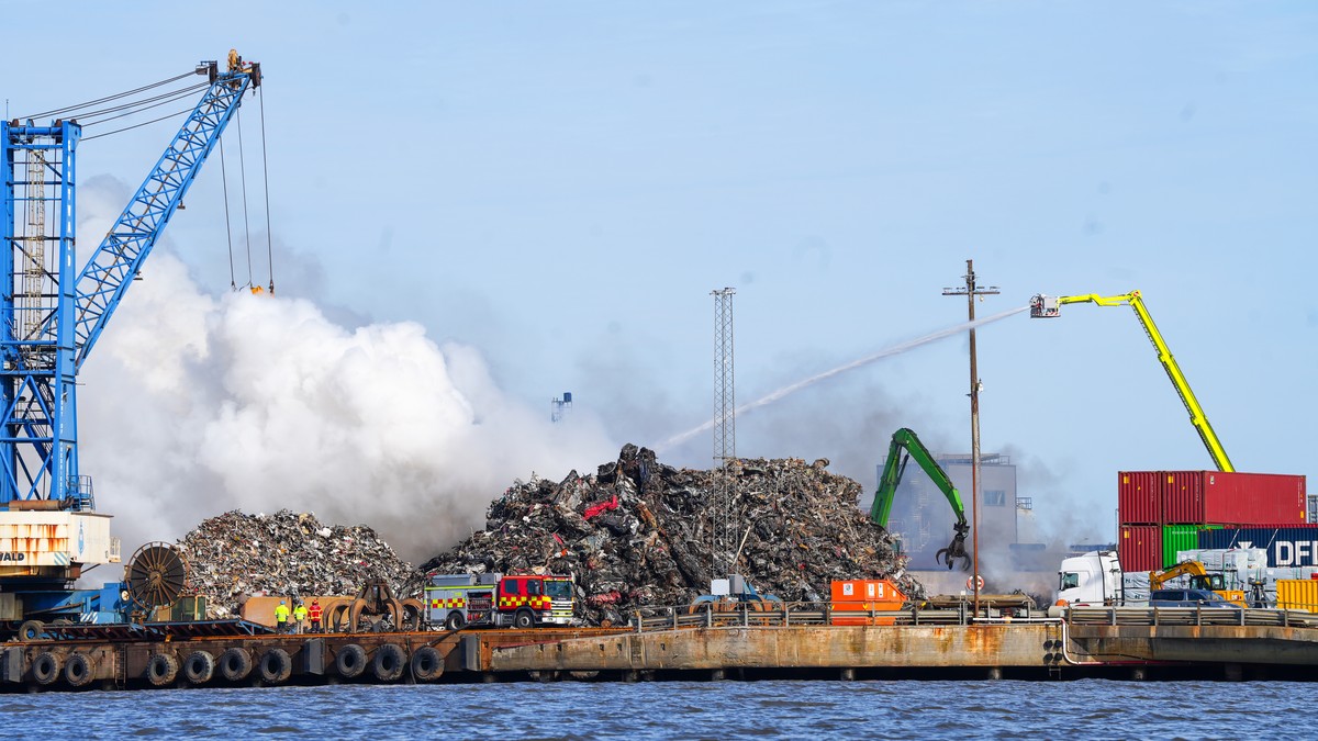 A significant fire broke out at a metal scrap heap in Fredrikstad, Norway, initially reported by employees. The resulting smoke spread to nearby Kråkerøy and the city center, prompting a public safety alert and urging residents to close windows and doors. Firefighters successfully extinguished the blaze with no reported injuries or further spread.